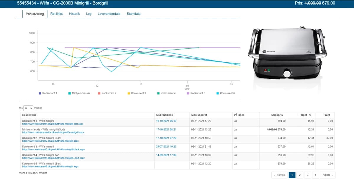 Vi kender dine konkurrenter. Vi giver dig deres priser, lagerstatus og den historiske prisudvikling. Lav dine prisstrategier derefter – og lad os opdatere dine priser løbende så du altid er konkurrencedygtig.